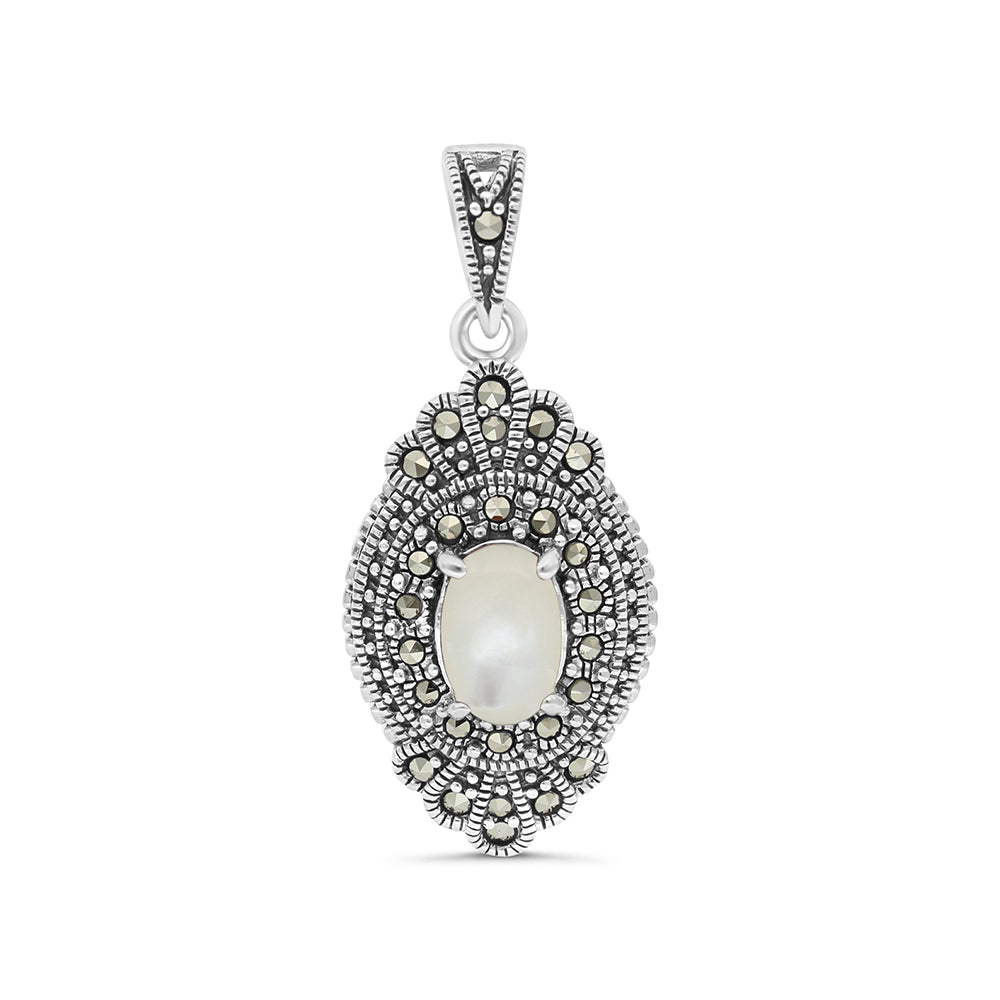 Sterling Silver 925 Pendant Embedded With Natural White Shell And Marcasite Stones