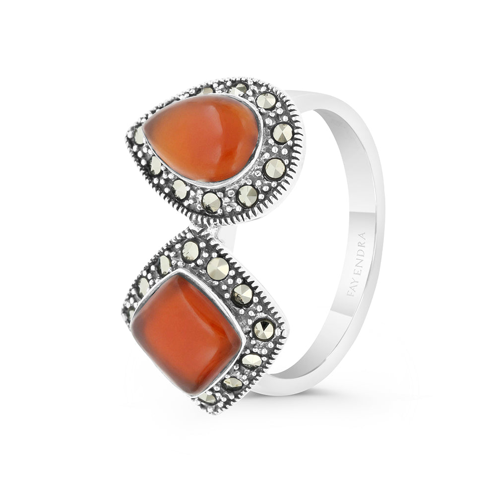 Sterling Silver 925 Ring Embedded With Natural Aqiq And Marcasite Stones