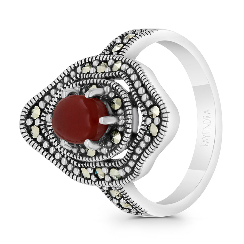 Sterling Silver 925 Ring Embedded With Natural Aqiq And Marcasite Stones