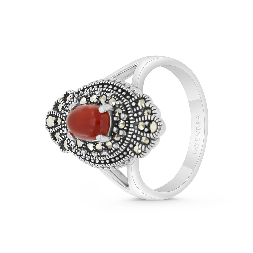 Sterling Silver 925 Ring Embedded With Natural Aqiq And Marcasite Stones