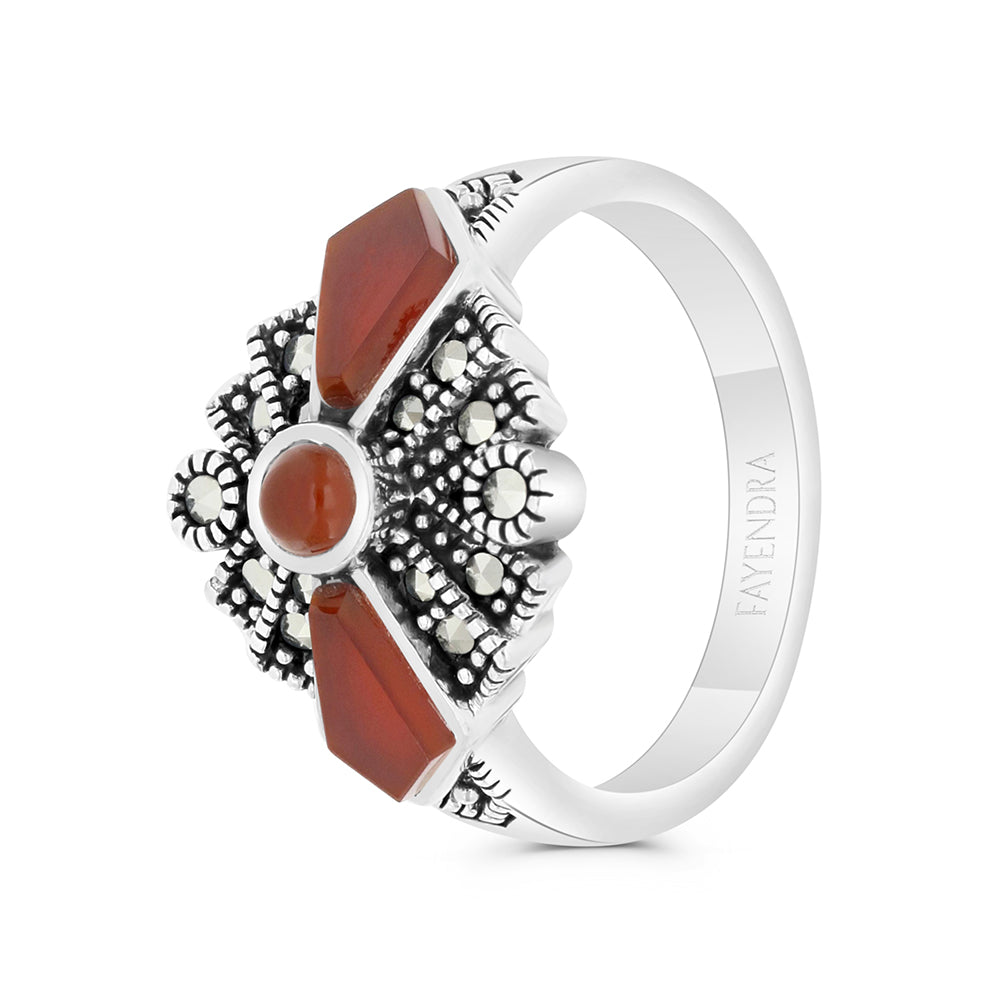 Sterling Silver 925 Ring Embedded With Natural Aqiq And Marcasite Stones