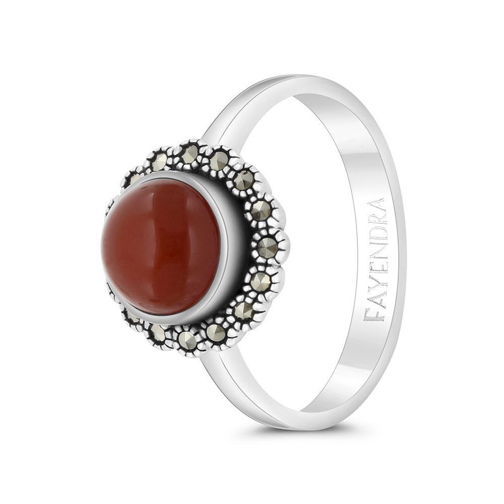 Sterling Silver 925 Ring Embedded With Natural Aqiq And Marcasite Stones