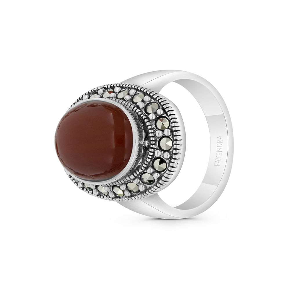 Sterling Silver 925 Ring Embedded With Natural Aqiq And Marcasite Stones