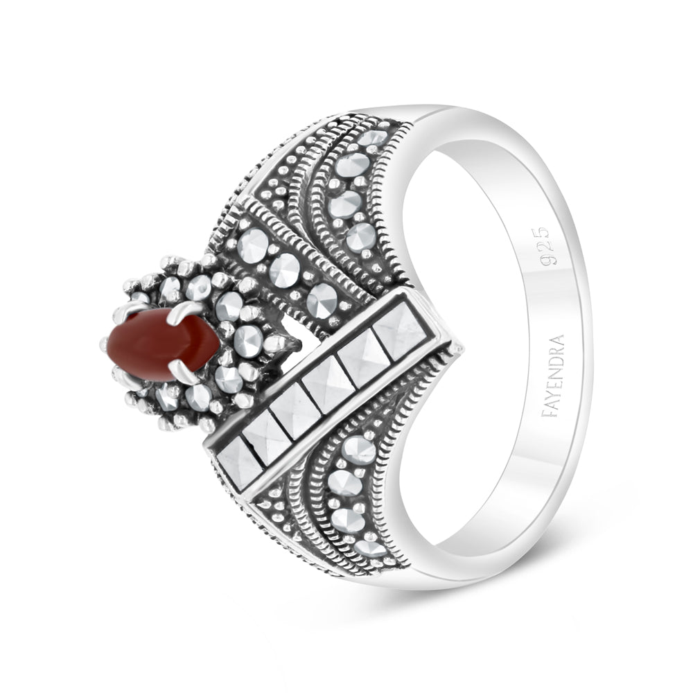 Sterling Silver 925 Ring Embedded With Natural Aqiq And Marcasite Stones