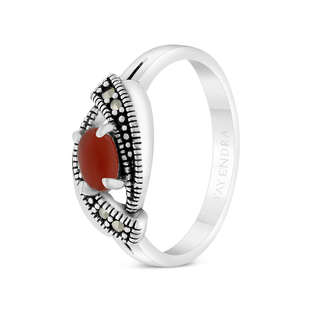 Sterling Silver 925 Ring Embedded With Natural Aqiq And Marcasite Stones