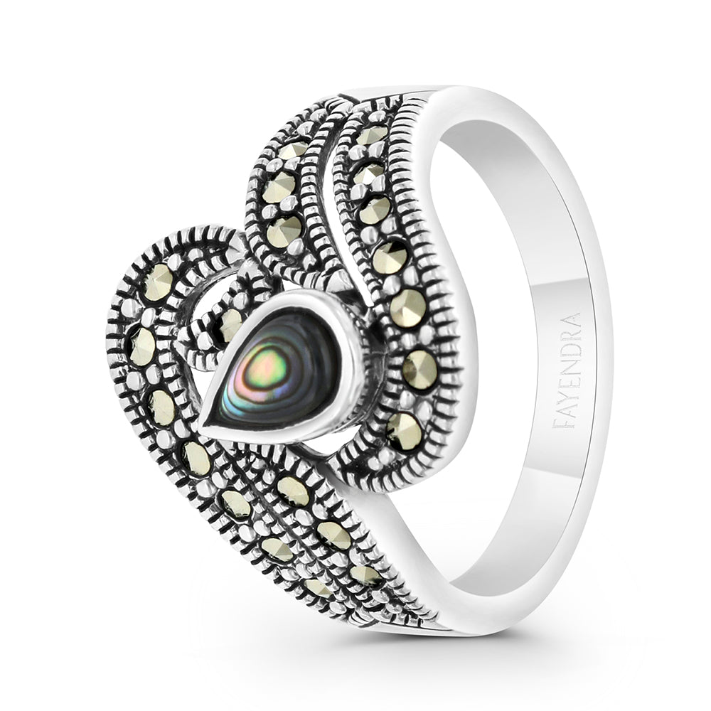 Sterling Silver 925 Ring Embedded With Natural Blue Shell And Marcasite Stones