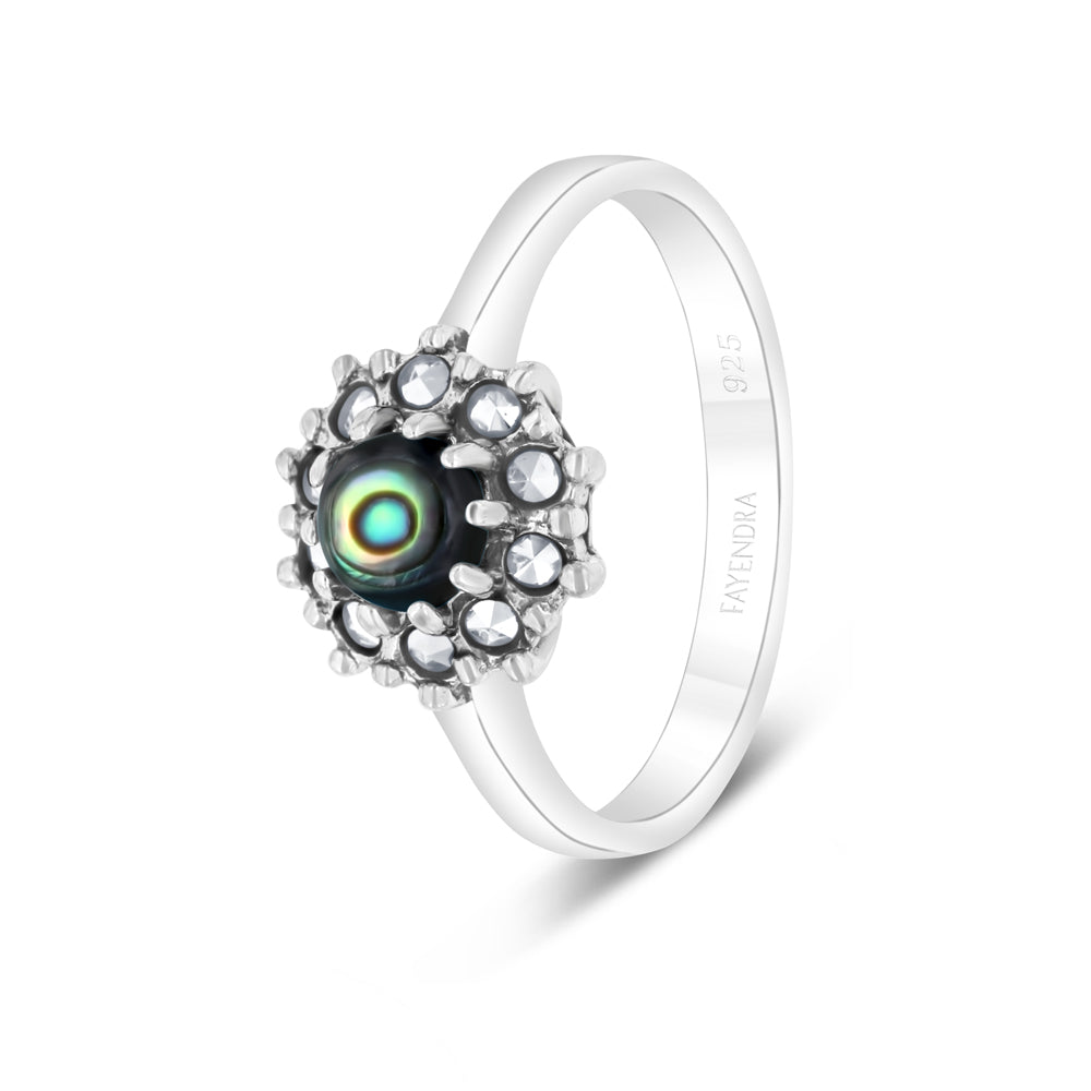 Total weight :2.9gIntroducing this classic"Blooming Petals" jewelry set by Fayendra, where elegance meets nature's beauty. The stunning set is inspired by the delicate allure of blooming flowers, crafted with meticulous attention to detail. Crafted with superior craftsmanship, the jewelry set showcases the brilliance of sparkling marcasite stones nestled within the petals of each flower. The vibrant colors of the natural blue shell stones, carefully selected to mimic the enchanting colors of nature, add a touch of radiance and allure. This alluring ring is a part of the set. Purchase it alone or pair it with the whole pieces.