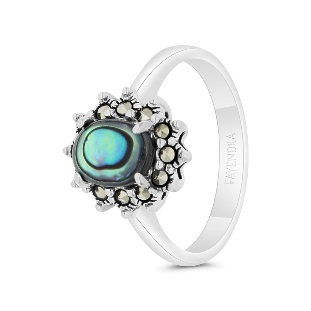 Sterling Silver 925 Ring Embedded With Natural Blue Shell And Marcasite Stones
