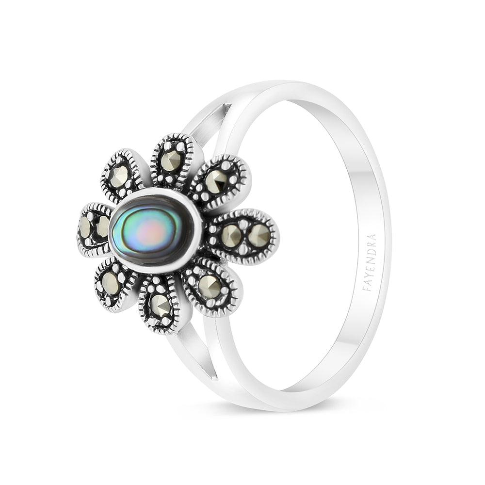 Sterling Silver 925 Ring Embedded With Natural Blue Shell And Marcasite Stones
