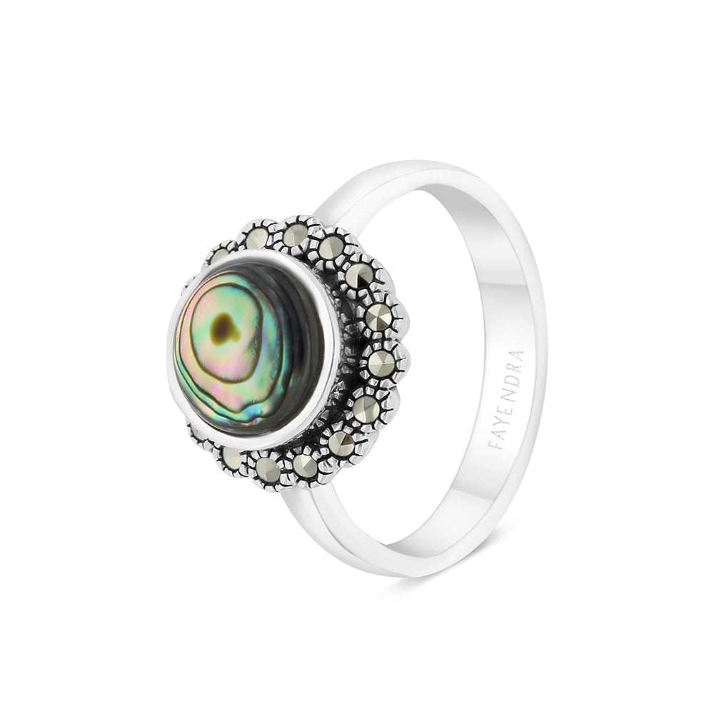 Sterling Silver 925 Ring Embedded With Natural Blue Shell And Marcasite Stones