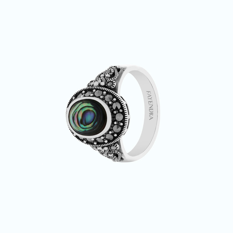 Sterling Silver 925 Ring Embedded With Natural Blue Shell And Marcasite Stones