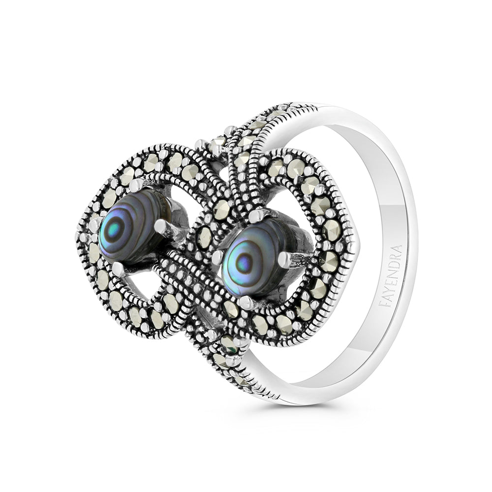Sterling Silver 925 Ring Embedded With Natural Blue Shell And Marcasite Stones
