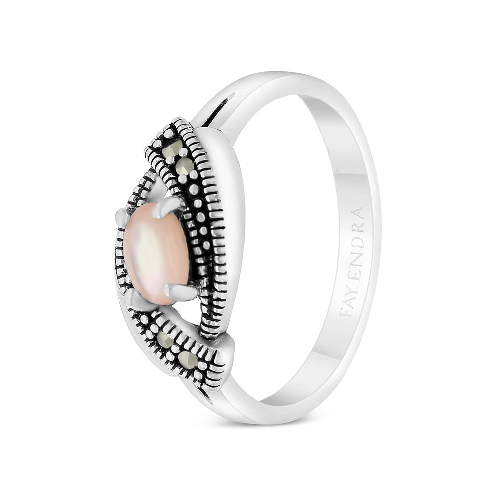 Sterling Silver 925 Ring Embedded With Natural Pink Shell And Marcasite Stones