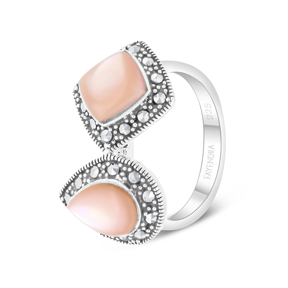 Sterling Silver 925 Ring Embedded With Natural Pink Shell And Marcasite Stones