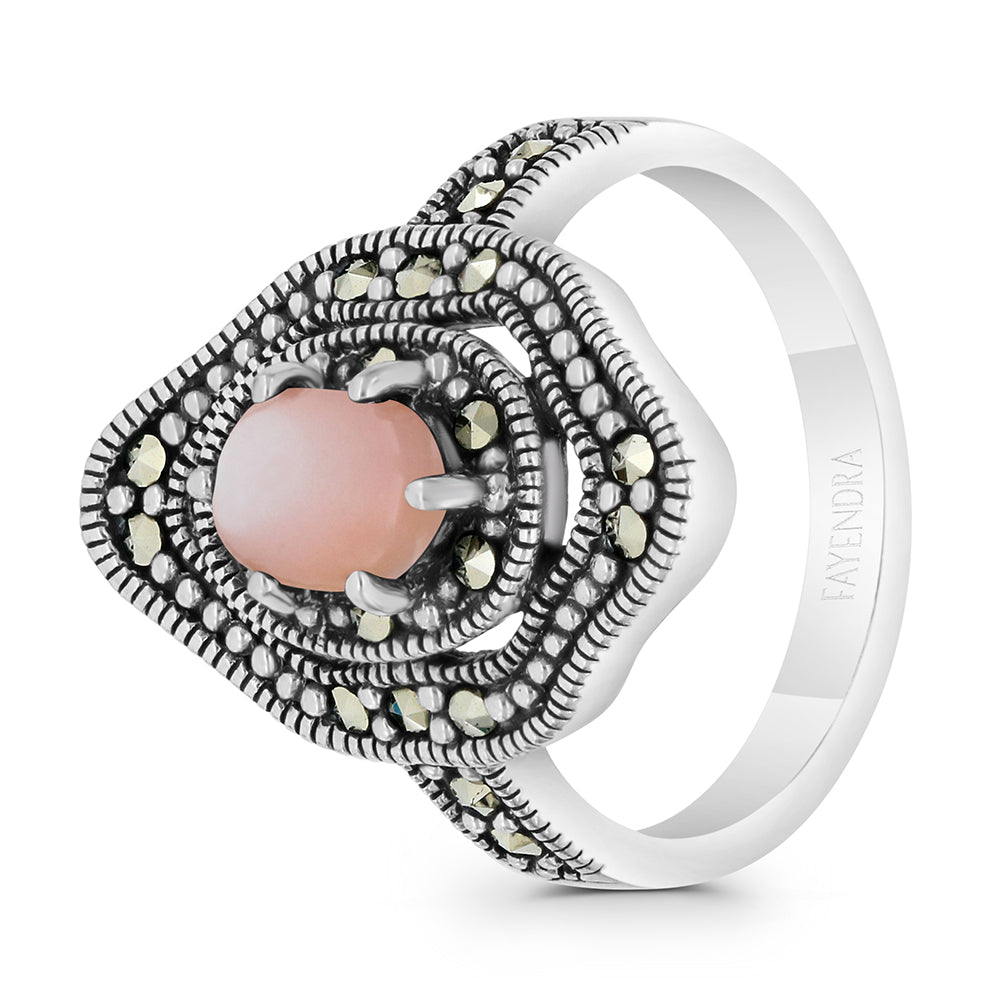 Sterling Silver 925 Ring Embedded With Natural Pink Shell And Marcasite Stones
