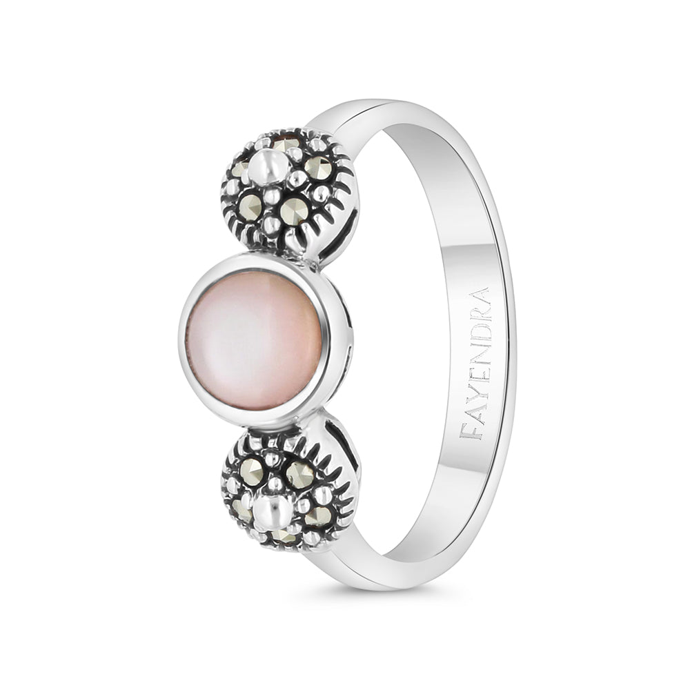 Sterling Silver 925 Ring Embedded With Natural Pink Shell And Marcasite Stones