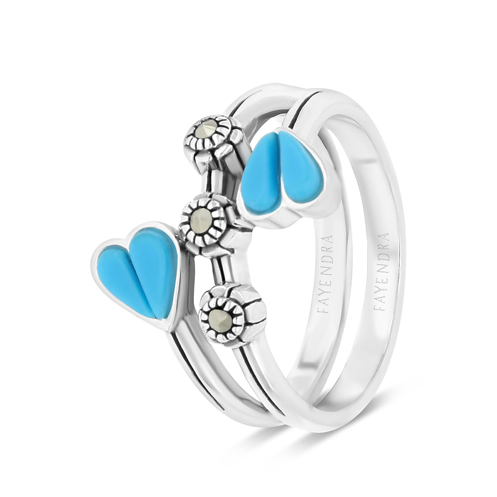 Sterling Silver 925 Ring Embedded With Natural Processed Turquoise And Marcasite Stones