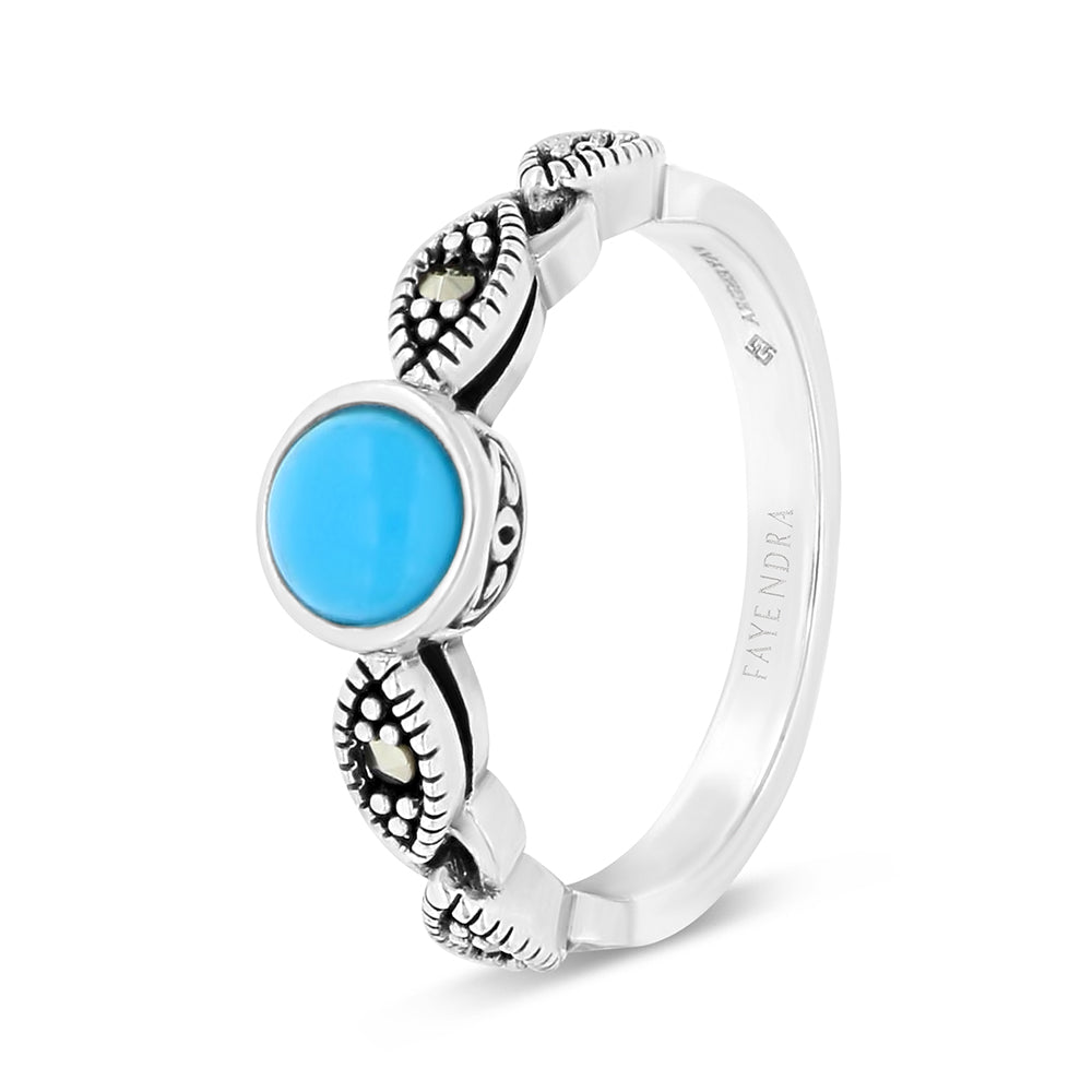 Sterling Silver 925 Ring Embedded With Natural Processed Turquoise And Marcasite Stones