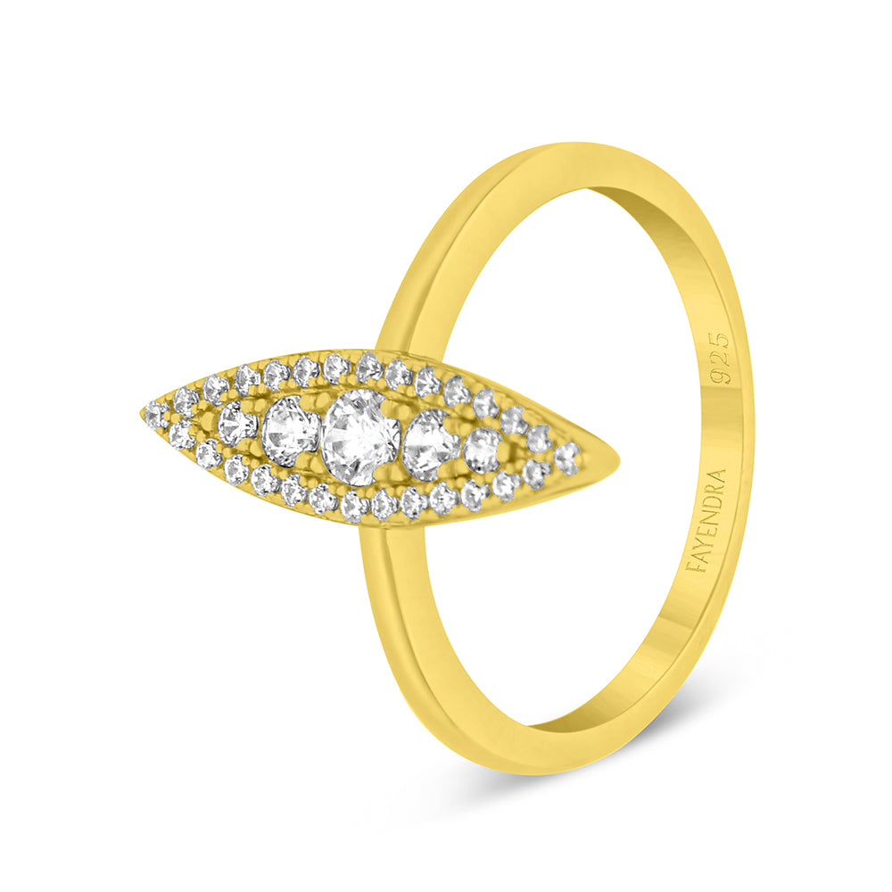 Total weight: 2.2gThis 925 sterling silver ring from Fayendra's modern collection will make your everyday look more elegant and attractive. The ring is 18-carat gold-plated and set with dazzling zircon stones. Suitable for stacking, daily looks, and special events.