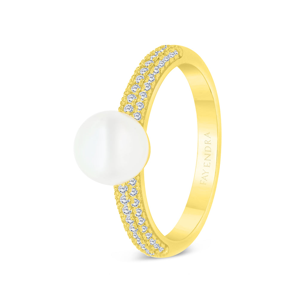 Sterling Silver 925 Ring Gold Plated Embedded With White Shell Pearl And White CZ
