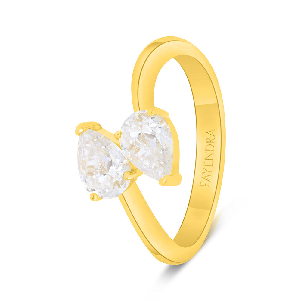 Sterling Silver 925 Ring Gold Plated Embedded With White Zircon