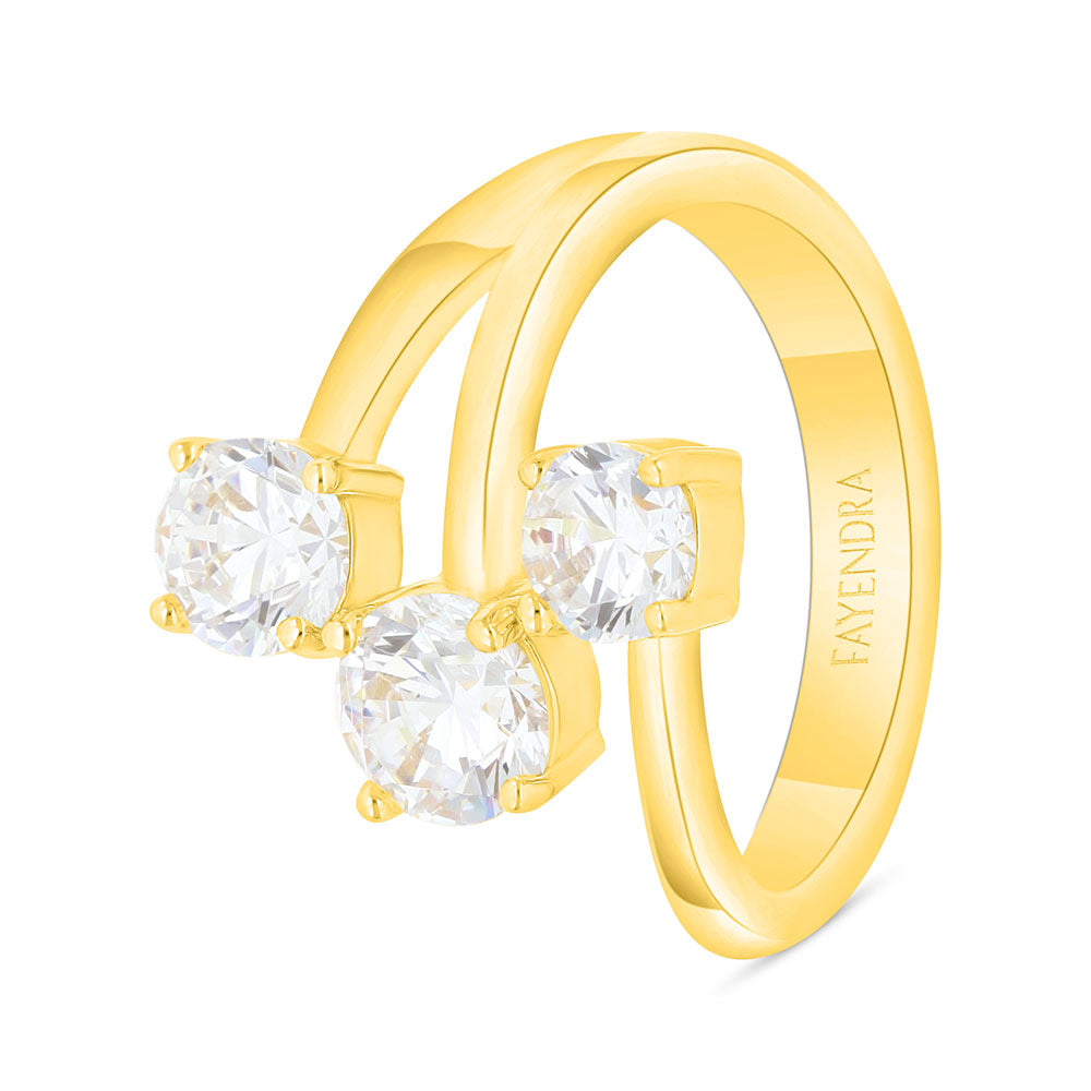 Sterling Silver 925 Ring Gold Plated Embedded With White Zircon