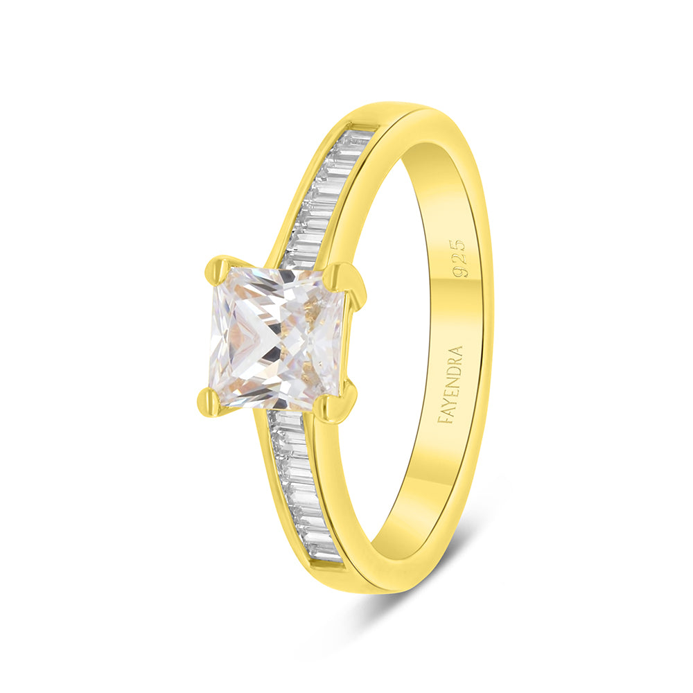 Sterling Silver 925 Ring Gold Plated Embedded With White Zircon