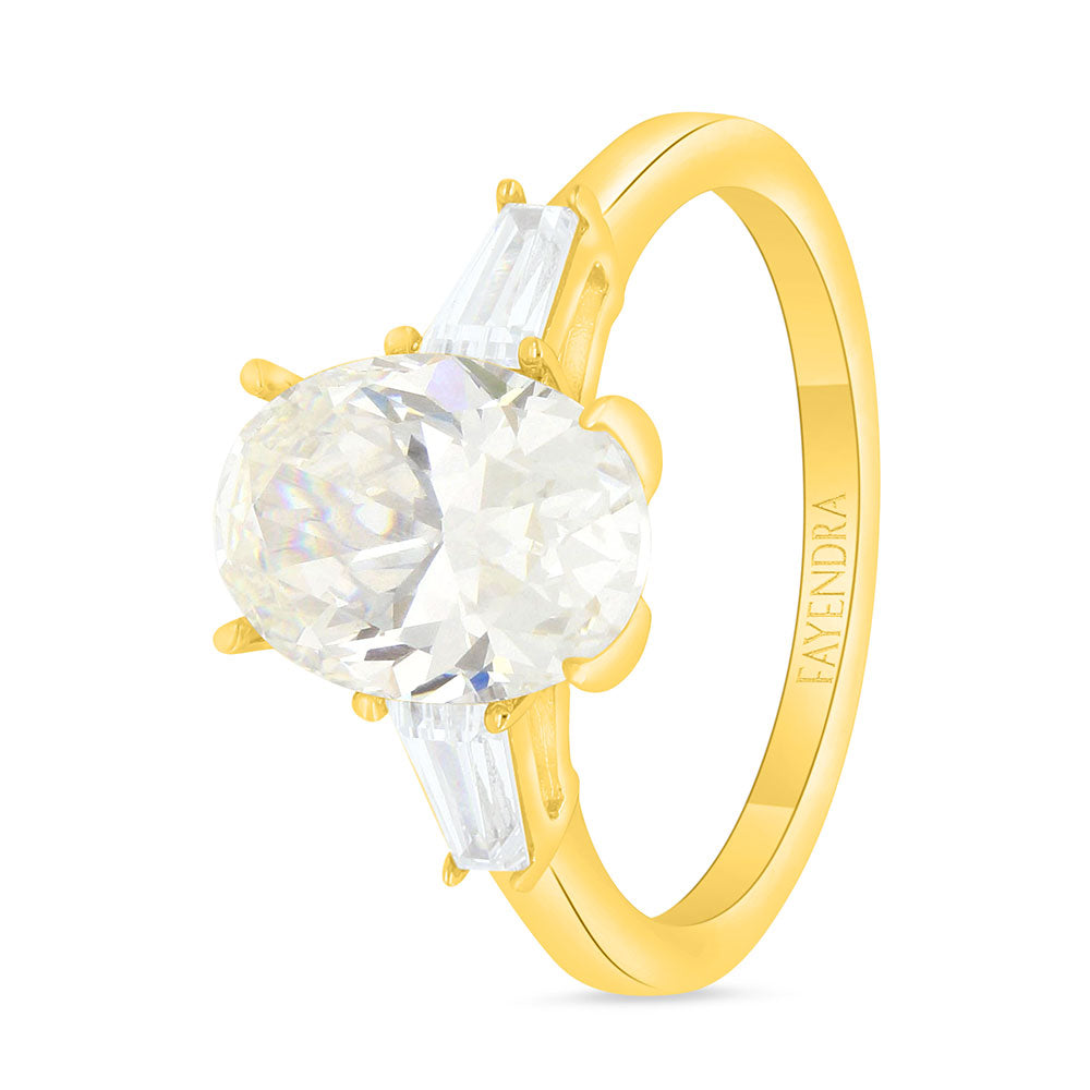 Sterling Silver 925 Ring Gold Plated Embedded With Yellow Zircon And White Zircon