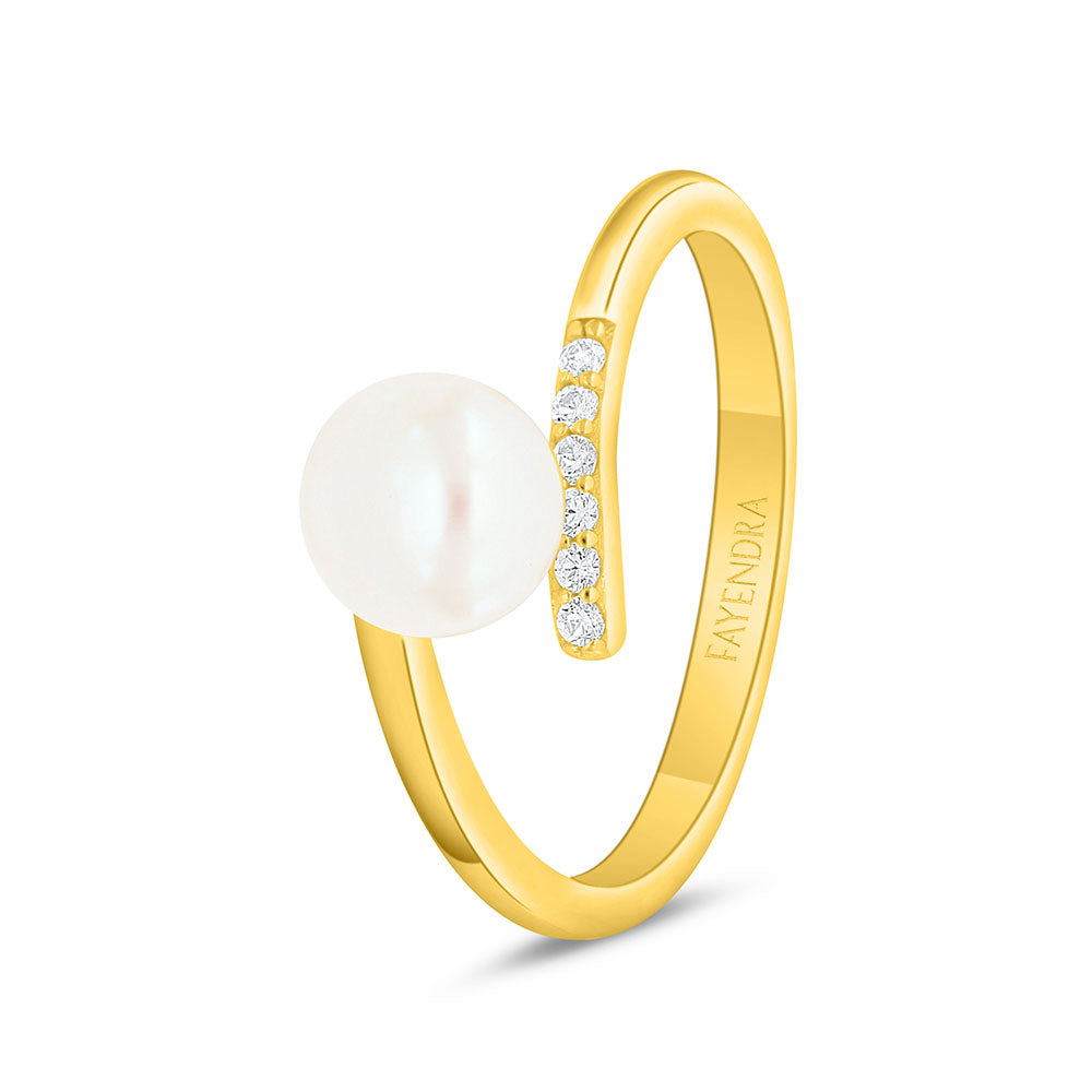 Sterling Silver 925 Ring Golden Plated Embedded With Fresh Water Pearl And White Zircon