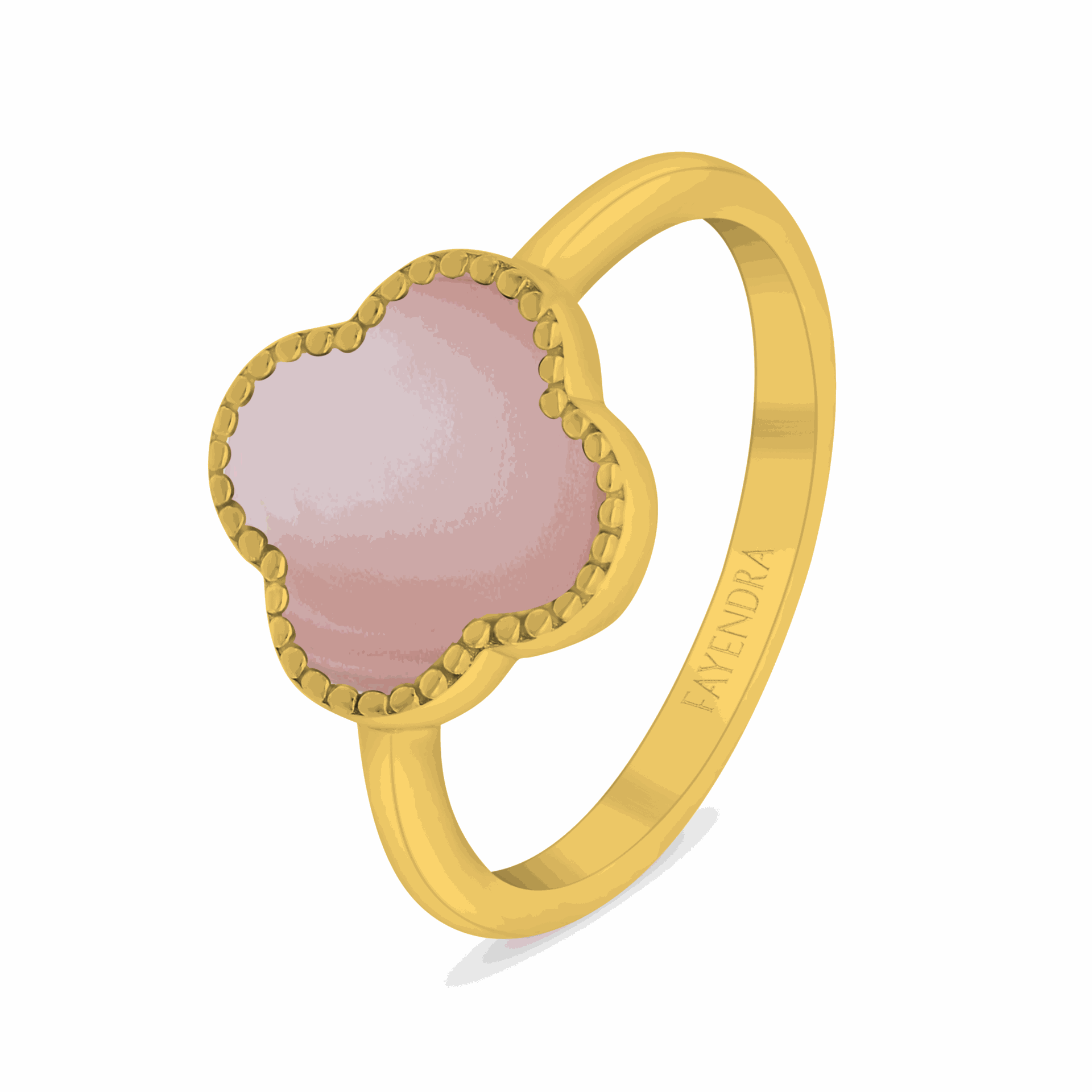 Sterling Silver 925 Ring Golden Plated Embedded With Pink Shell