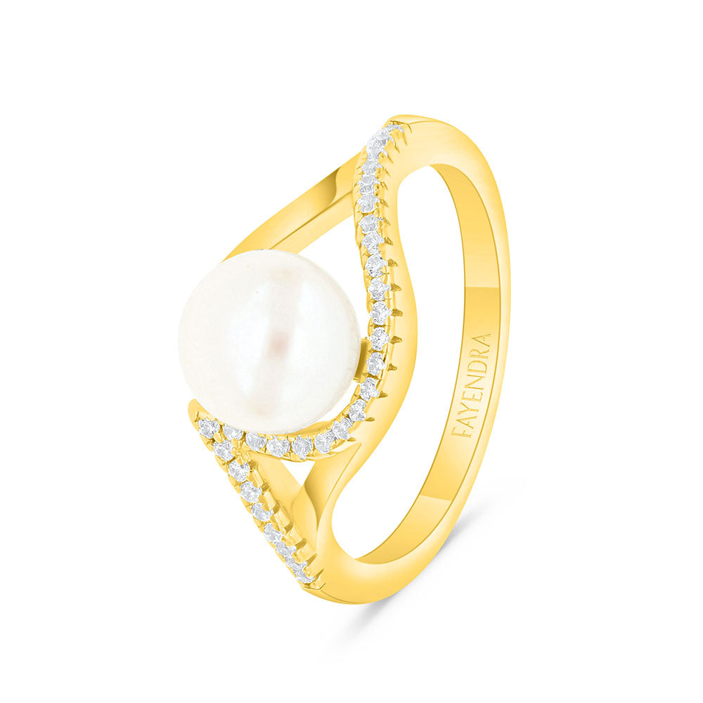 Sterling Silver 925 Ring Golden Plated Embedded With White Shell Pearl And White Zircon