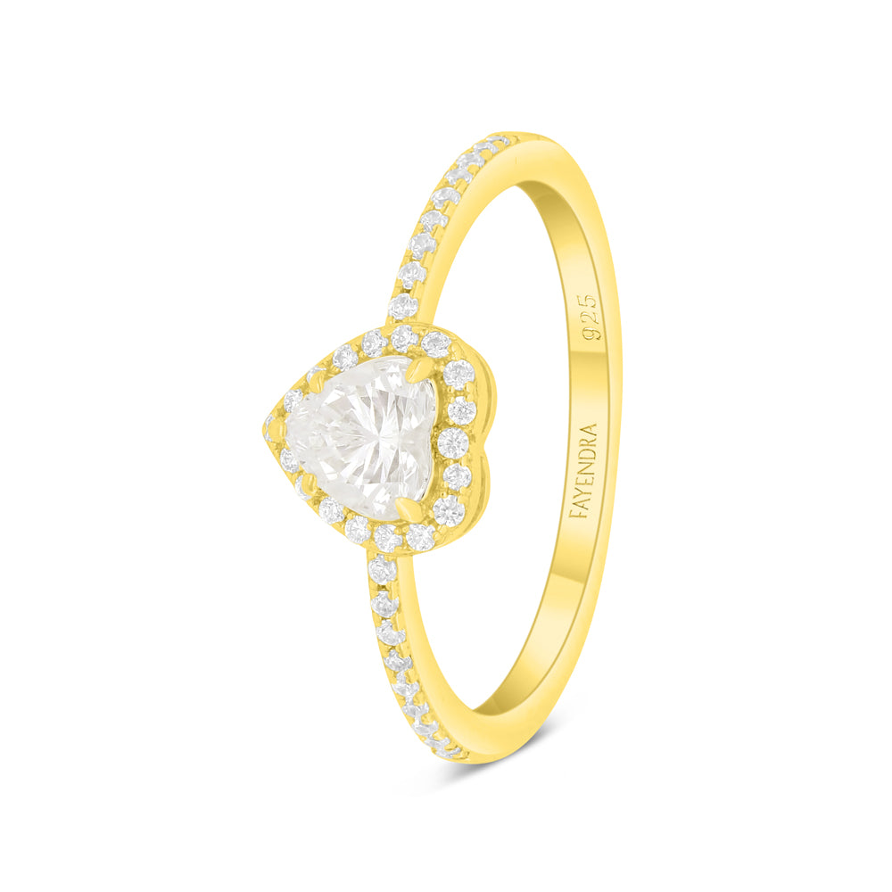 Total Weight: 1.8gThe essence of your elegance lies in the way you select your favorite pieces — like this exquisite ring from Fayendra, crafted from pure 925 sterling silver and plated with gold. It features a refined design centered around a heart-shaped white zircon stone, glowing like moonlight and reflecting the sincerity of your emotions, adding a touch of joy and vibrance to your look. Surrounding it is a selection of luminous white zircon stones that sparkle like the light of the moon. Add it to your cart now!