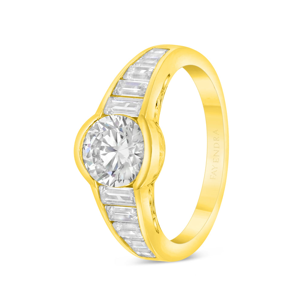 Sterling Silver 925 Ring Golden Plated Embedded With White Zircon