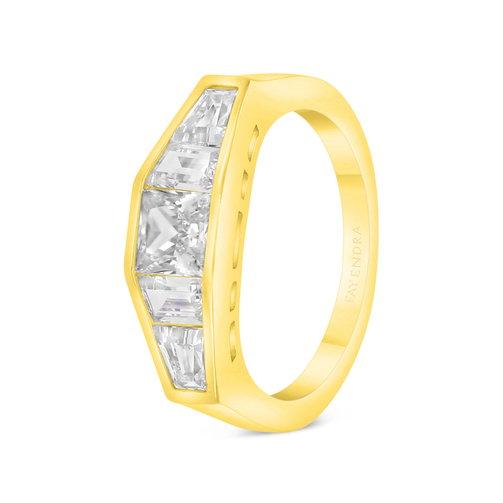 Sterling Silver 925 Ring Golden Plated Embedded With White Zircon