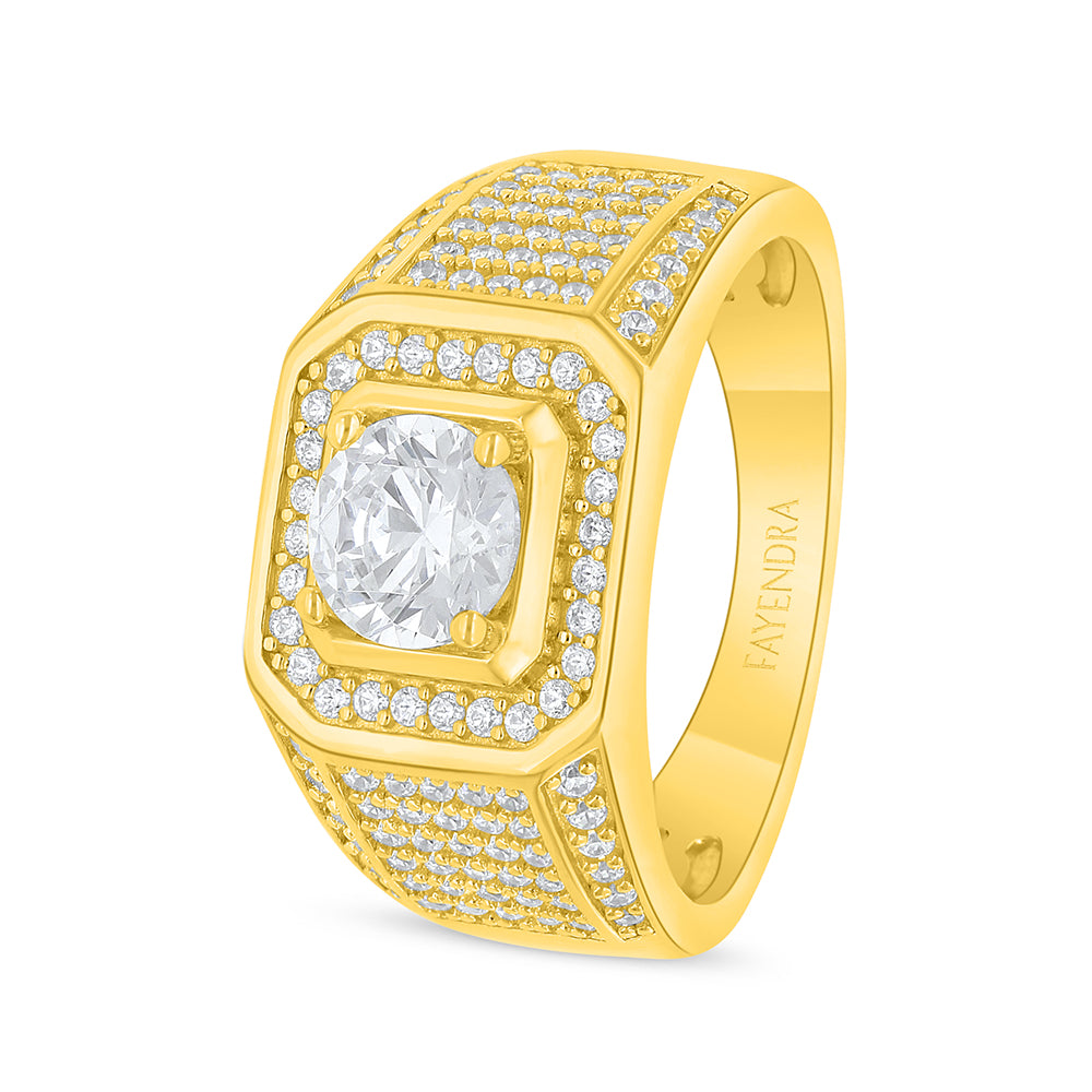 Sterling Silver 925 Ring Golden Plated Embedded With White Zircon