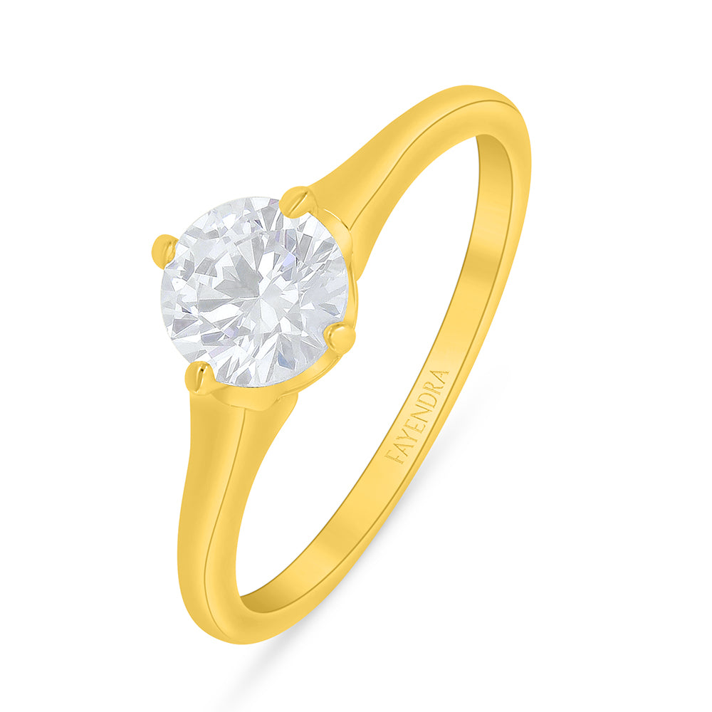 Sterling Silver 925 Ring Golden Plated Embedded With White Zircon