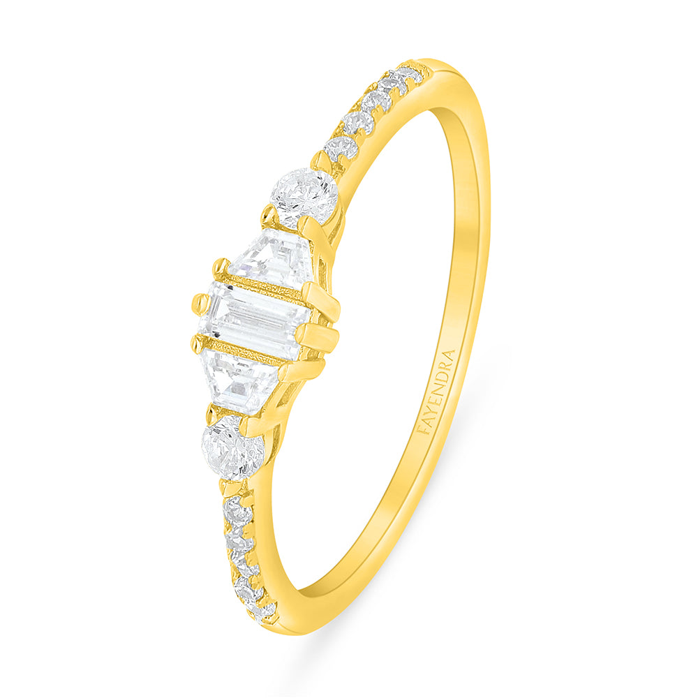 Sterling Silver 925 Ring Golden Plated Embedded With White Zircon