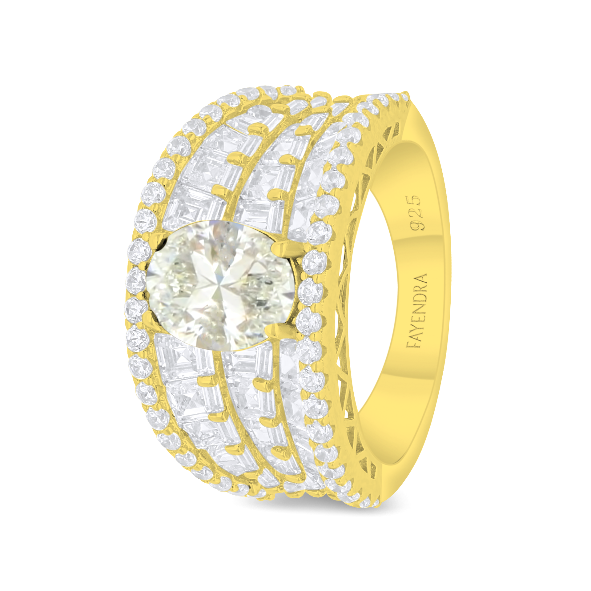 Sterling Silver 925 Ring Golden Plated Embedded With Yellow Diamond And White Zircon