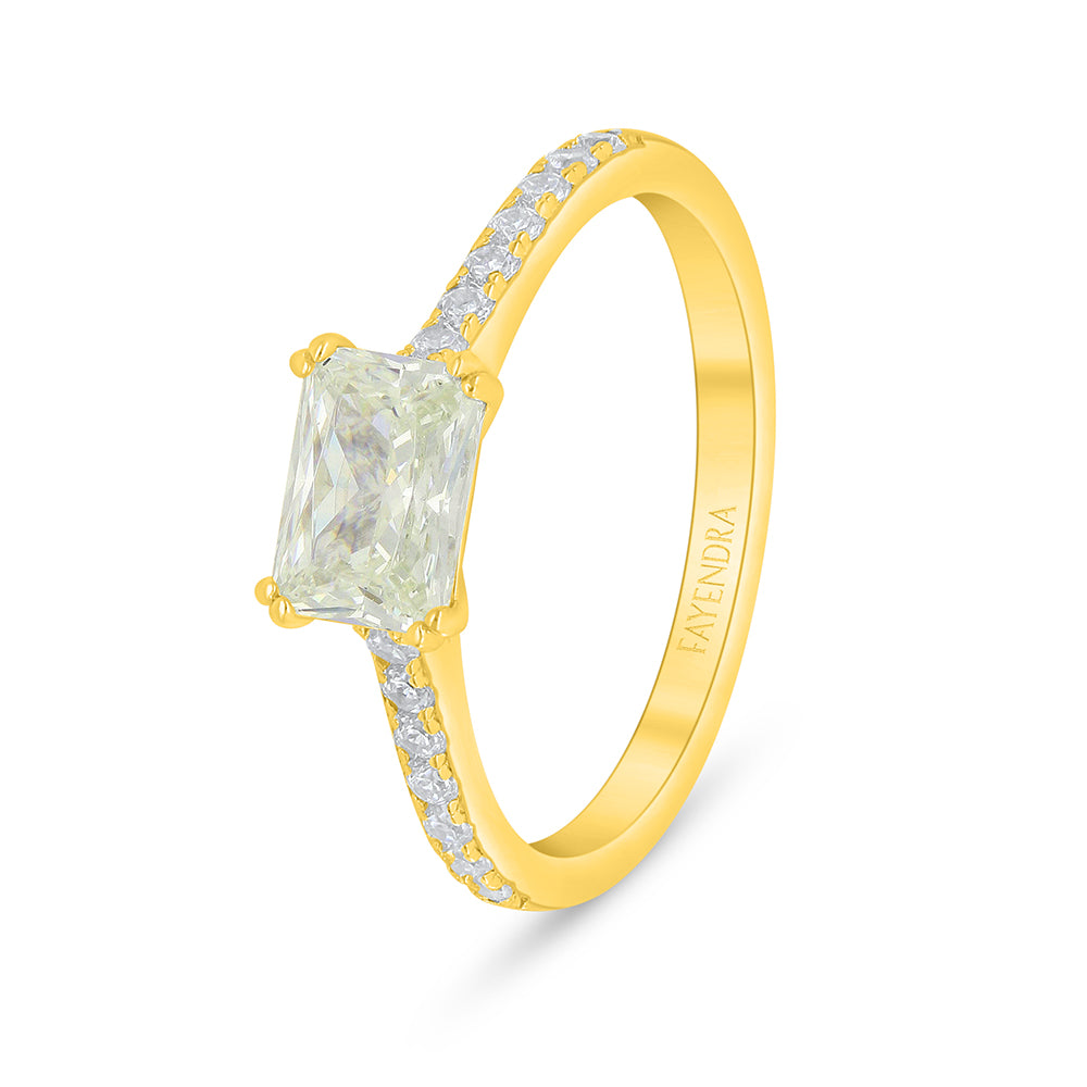 Sterling Silver 925 Ring Golden Plated Embedded With Yellow Diamond And White Zircon