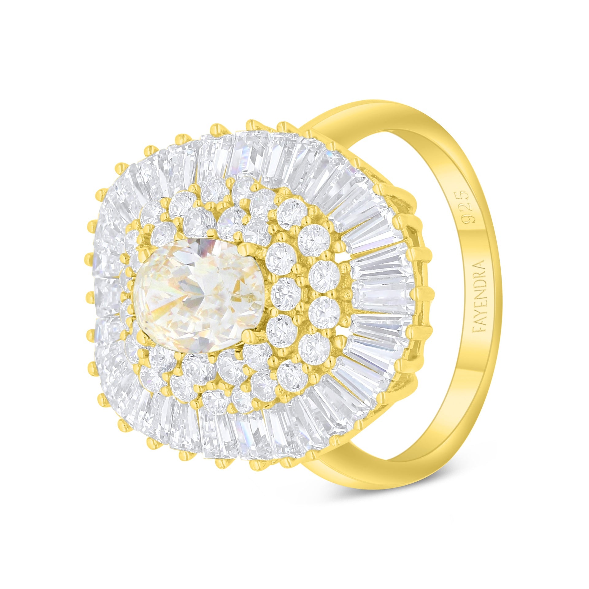 Sterling Silver 925 Ring Golden Plated Embedded With Yellow Diamond And White Zircon