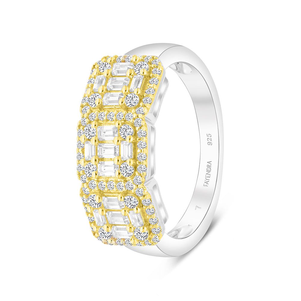 silver 925 ring, plated in rhodium and gold, and adorned with white cubic