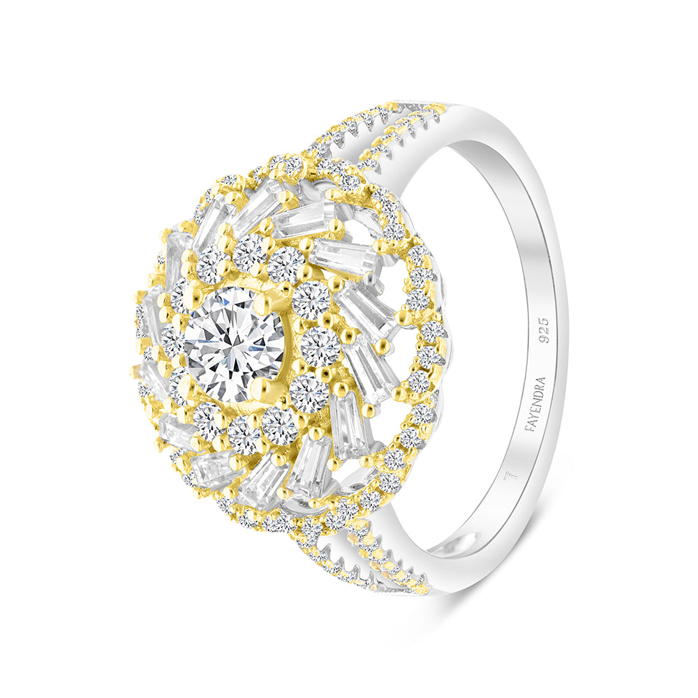 Sterling Silver 925 Ring Rhodium And Gold Plated Embedded With White CZ