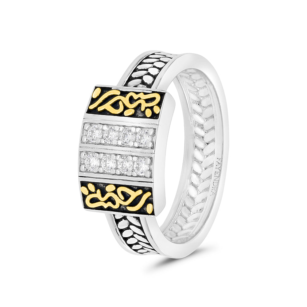 Sterling Silver 925 Ring Rhodium And Gold Plated Embedded With White CZ
