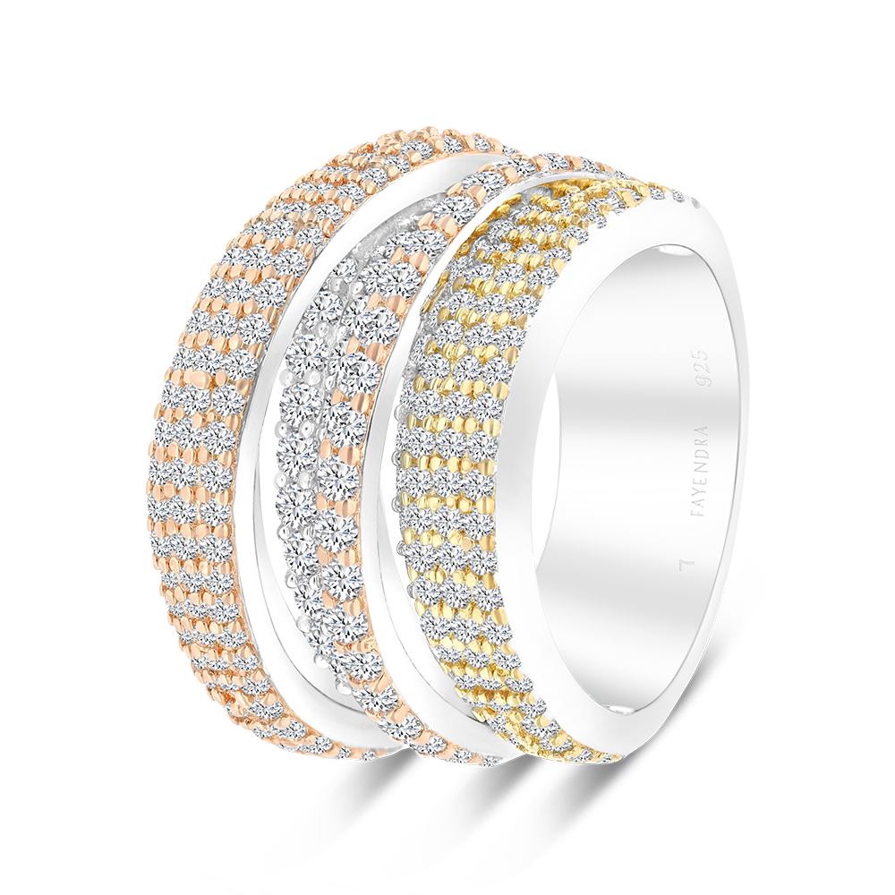 Sterling Silver 925 Ring Rhodium and Gold And Rose Gold Plated