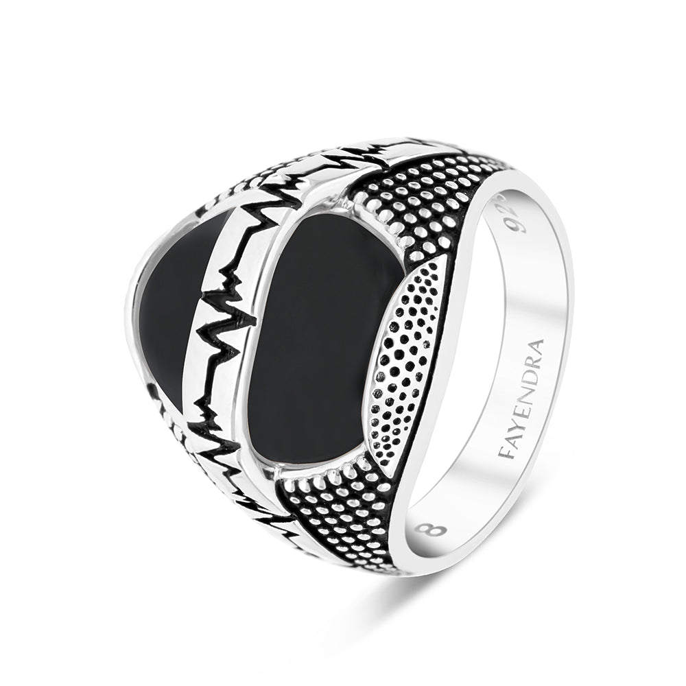 Sterling Silver 925 Ring Rhodium Plated Black Agate For Men