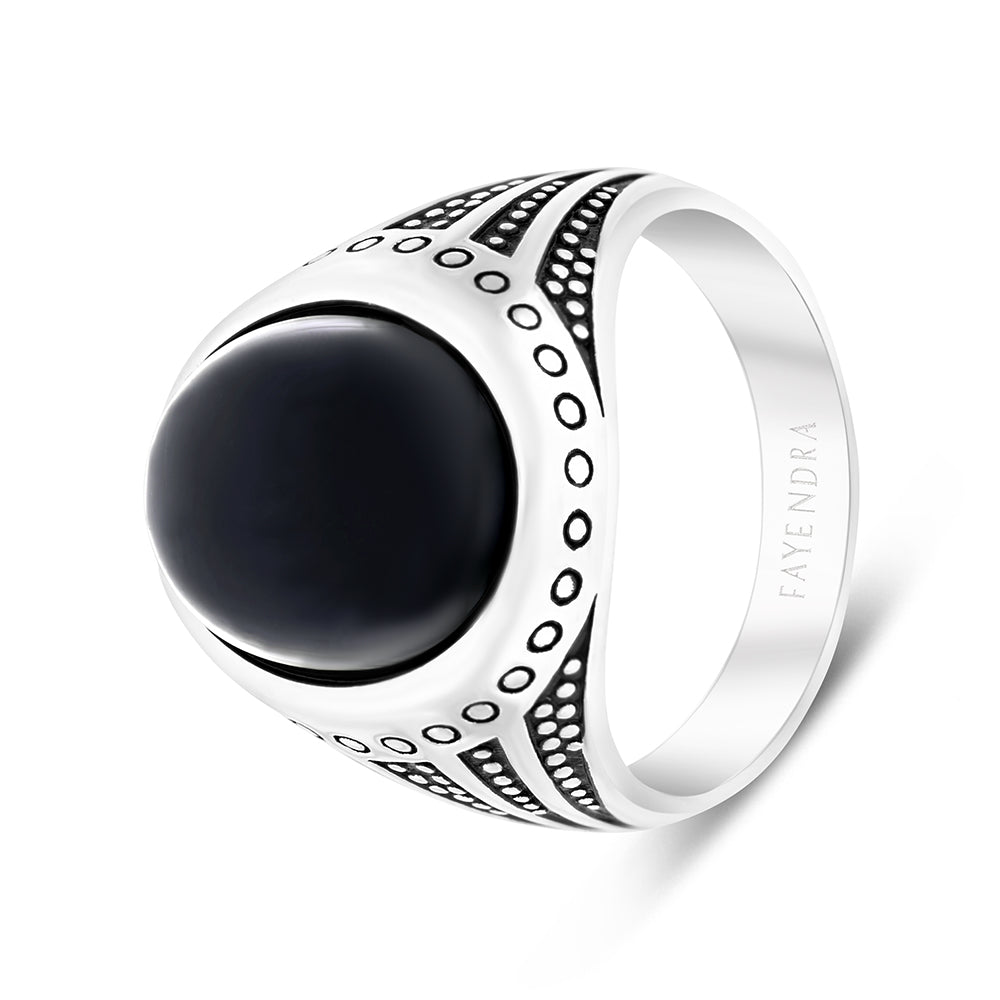 Sterling Silver 925 Ring Rhodium Plated Black Agate For Men