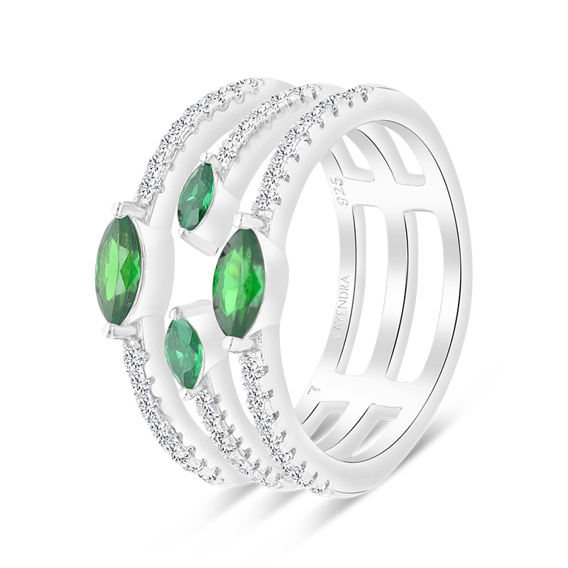 Sterling Silver 925 Ring Rhodium Plated Embedded With Emerald
