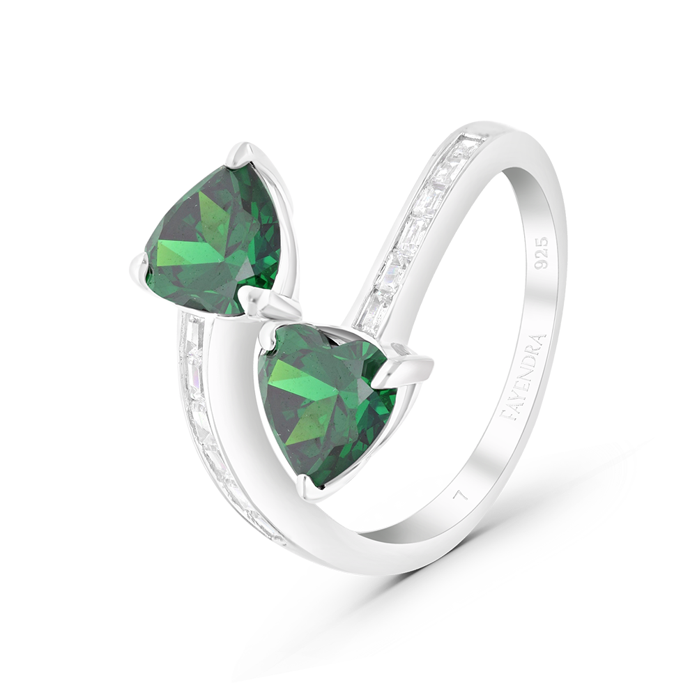 Sterling Silver 925 Ring Rhodium Plated Embedded With Emerald