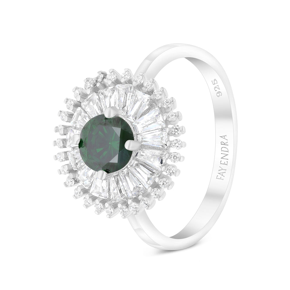 Sterling Silver 925 Ring Rhodium Plated Embedded With Emerald