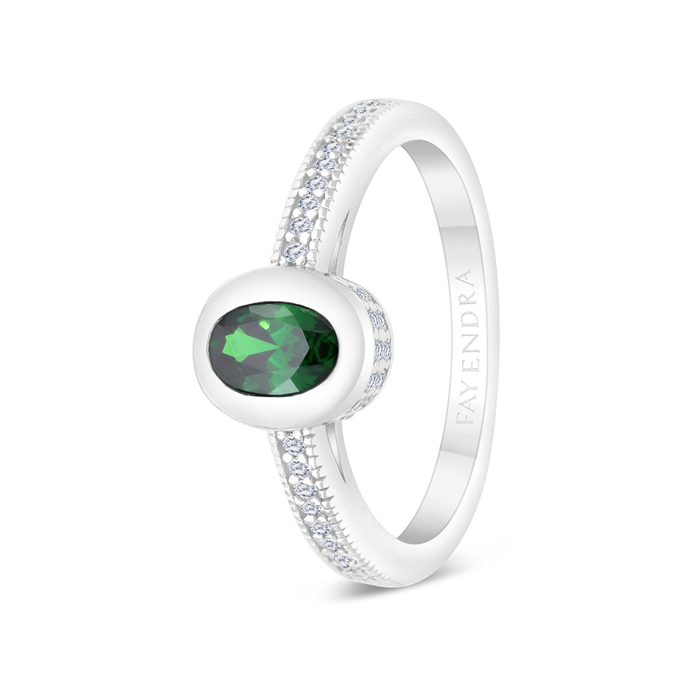 Sterling Silver 925 Ring Rhodium Plated Embedded With Emerald And White CZ